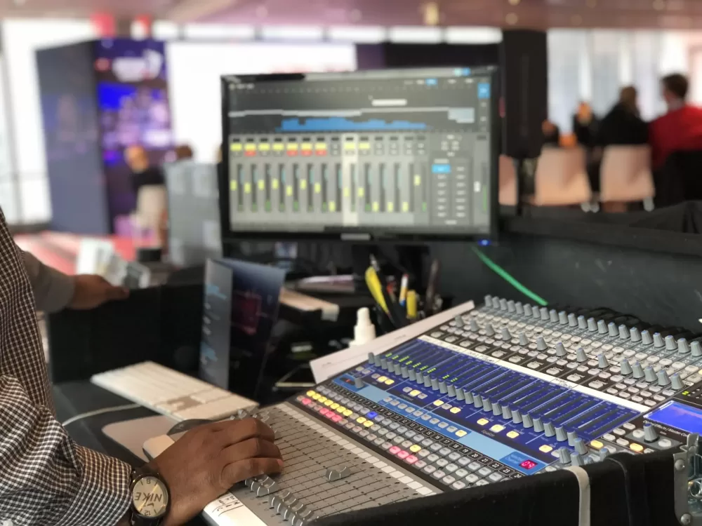 During live events, the audio console is typically operated by an audio engineer. On events that have multiple audio engineers, the one who operates the console is usually the more experienced, seasoned technician, referred to as the A1. Meanwhile, the A2 is usually in charge of mic’ing presenters backstage and communicates with the A1 over headset to make sure all microphones are labeled correctly and given to the right presenters.