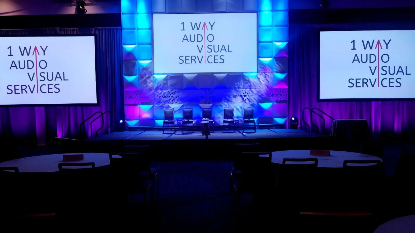 Second, lighting the back of the stage creates depth that separates the presenter from the background. Instead of everything blurring together and looking like it’s on the same plain, the presenter will be clearly separated from the background visuals, placing the focus on them.